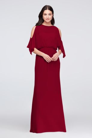 Cold Shoulder Blouson Chiffon Bridesmaid Dress