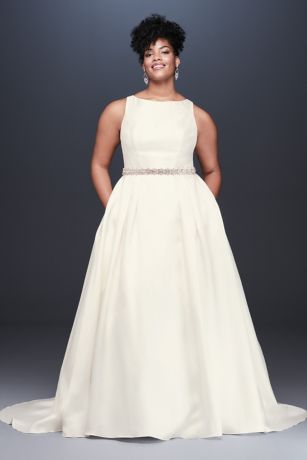 High Neck Mikado Plus Size Ball Gown Wedding Dress