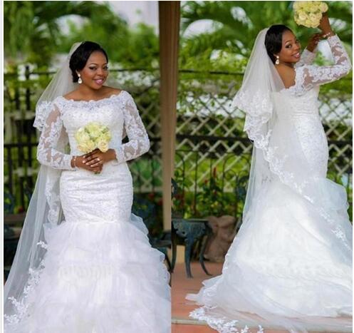 African Style Plus Size Mermaid Wedding Dresses 2019 Sparkly Beaded Deep V Neck Bridal Gowns Robe De Marriage Wedding Gowns For Black Women Mermaid