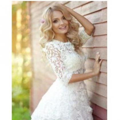 Short Wedding Dresses 2018 Lace Three Quarter Sleeve