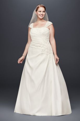 Appliqued Satin Cap Sleeve Plus Size Wedding Dress