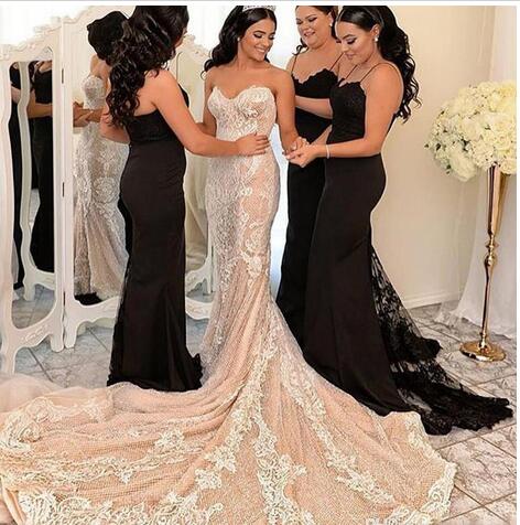 Gorgeous Champagne Lace Appliques Mermaid Wedding Dresses Vestido De Noiva Sweetheart Backless Bridal Gowns Court Train Wedding Gown