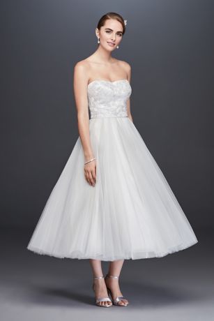 Browse davids bridal stunning collection of tea length dresses with sleeves or strapless all in black red or other colors at an affordable price today. Mini or mid length cocktail dresses are considered non grata for the formal event while knee length or floor length exquisite womens gowns are more suitable for luxurious recherche evenings. Shop davids assortment of on trend short wedding dresses to find the silhouette of your dreams.